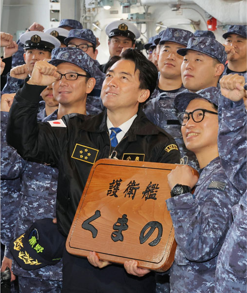 「危険だ」危険だ」と言うだけで、防衛政策のどこが問題か、何に重点を置くのか、解決策の提示さえも何も語られていない(護衛艦「くまの」を視察する小泉防衛相)/(代表撮影)