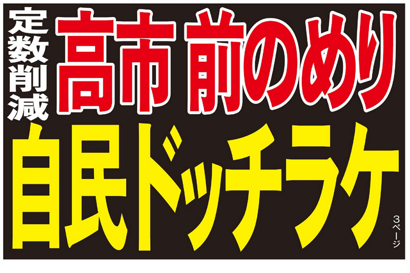 現状、自維与党は改革の方向性を定めるプログラム法案の今国会での提出で合意。しかし、維新は法施行後1年以内に結論が出ない場合、自動的に比例代表を50削減することを盛り込むよう主張し、強硬な態度だ。高市本人も本気のようだ。