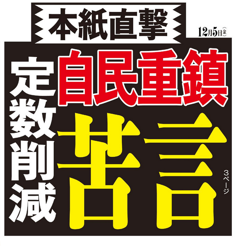 定数削減を含む自維連立政権のデタラメ政治については、関連記事【もっと読む】【さらに読む】などでも詳しく報じている。