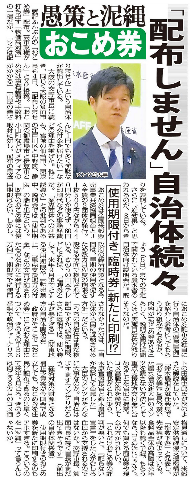 使用期限付きのおこめ券を新たに印刷するのもアホすぎる。こういうのを「泥縄」って言うんじゃないか。
