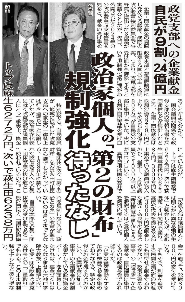 規制強化は待ったなし!政治家個人の「第2の財布」政党支部への企業献金は自民が9割、24億円超の仰天