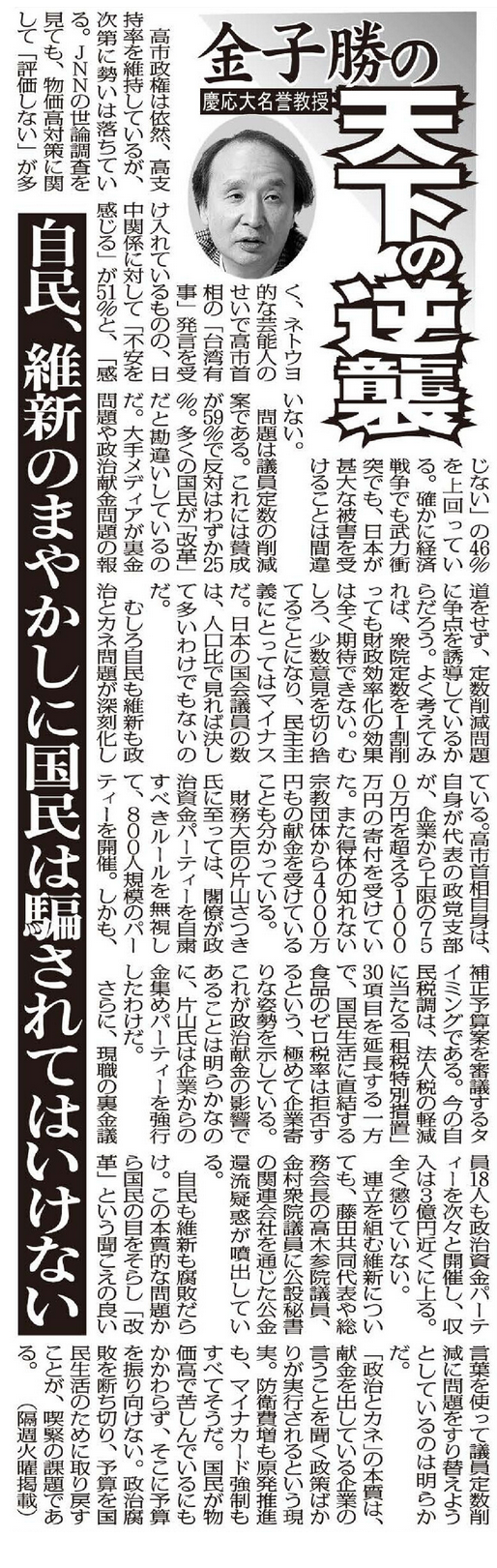 自民、維新のまやかしに国民は騙されてはいけない 金子勝の「天下の逆襲」