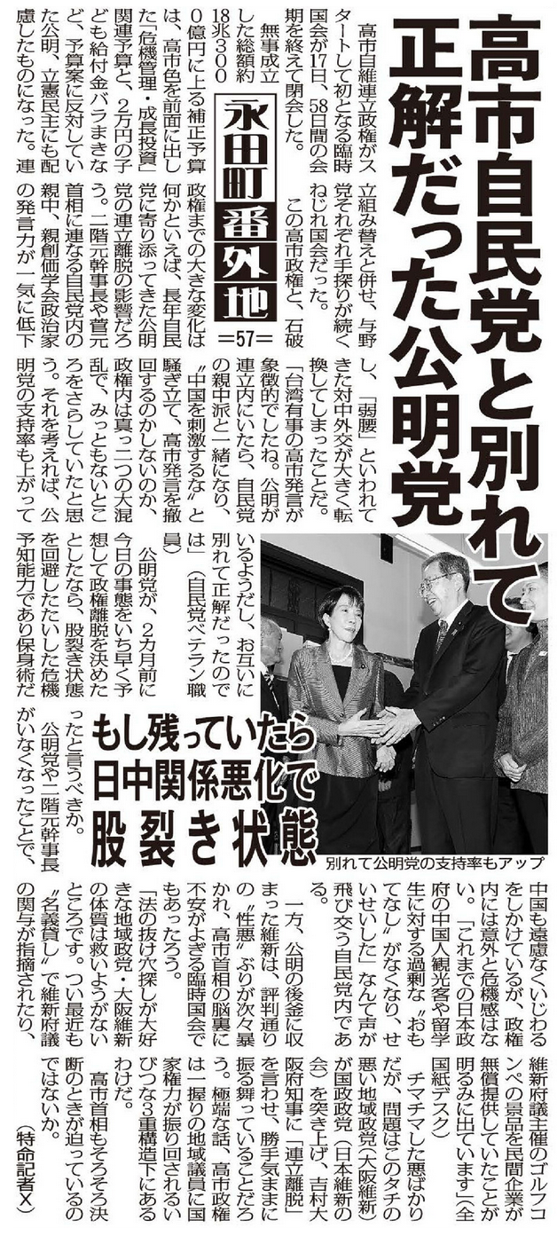 高市自民と別れて正解だった公明党 与党に残っていたら日中関係悪化で“股裂き”状態に 永田町番外地