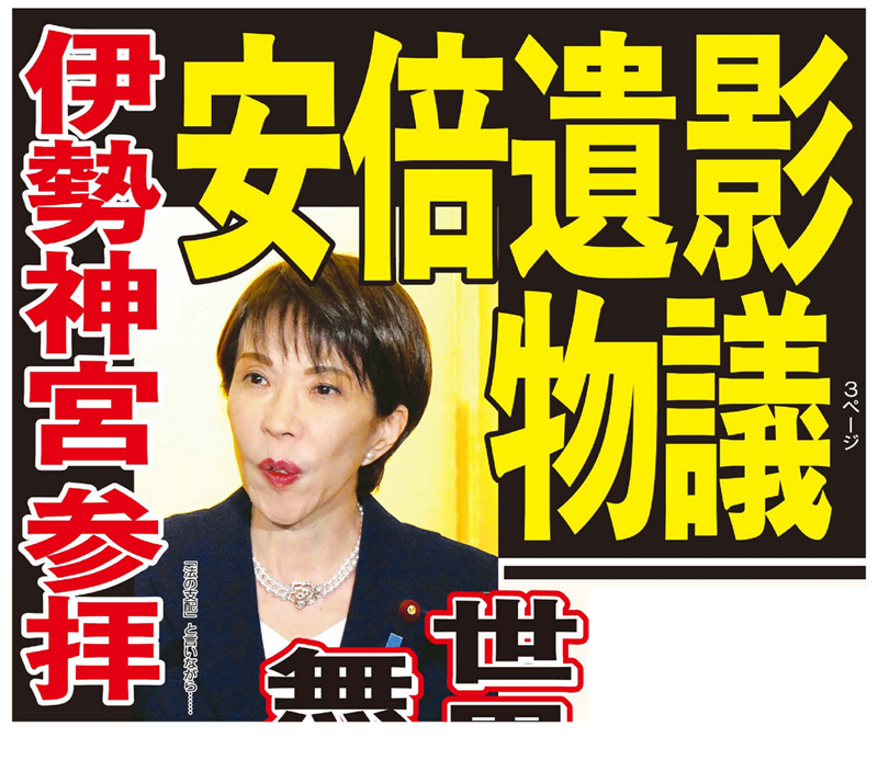 高市首相は記者会見に先立ち、閣僚らとともに三重県の伊勢神宮を参拝。その際、安倍元首相の遺影を持参していた。参拝時のニュース映像を見ると、内宮への参道口にある宇治橋を渡る際、高市首相が笑顔の安倍元首相の写真を両手に持って歩いている姿が映っていた。