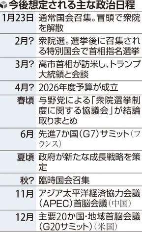 今後想定される主な政治日程