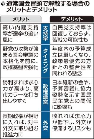 首相が1月の衆院解散を検討しているのは、内閣支持率が高水準で推移していることが背景にありそうだ。読売新聞社の全国世論調査では、昨年10月の発足当初は71%で、同12月(73%)まで7割を維持している。