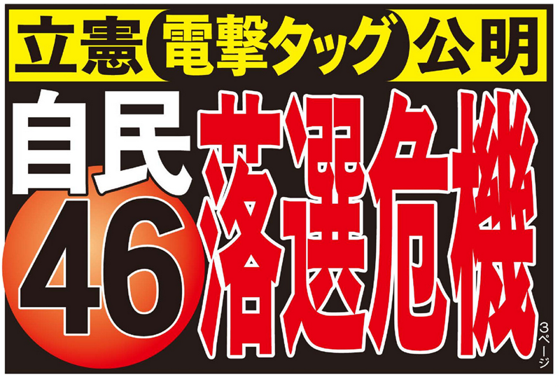 そこで日刊ゲンダイは、一昨年秋の前回衆院選で、次点の候補に2万票以内で辛勝した自民議員をピックアップした。その結果、公明票を失うことで落選危機に陥る議員は、なんと46人に上った。現状で自民衆院議員は196人おり、およそ4分の1にあたる。