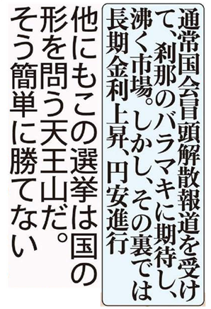 争点は山のようにある 自民圧勝予測で沸く市場 そうは問屋が卸さない