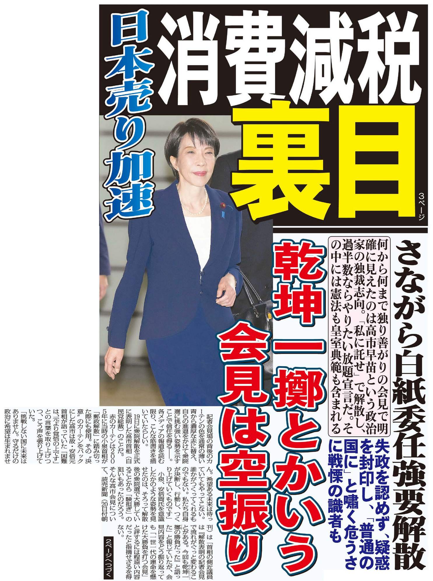 国民不在、選挙目当ての政治、永田町の論理は高市自身