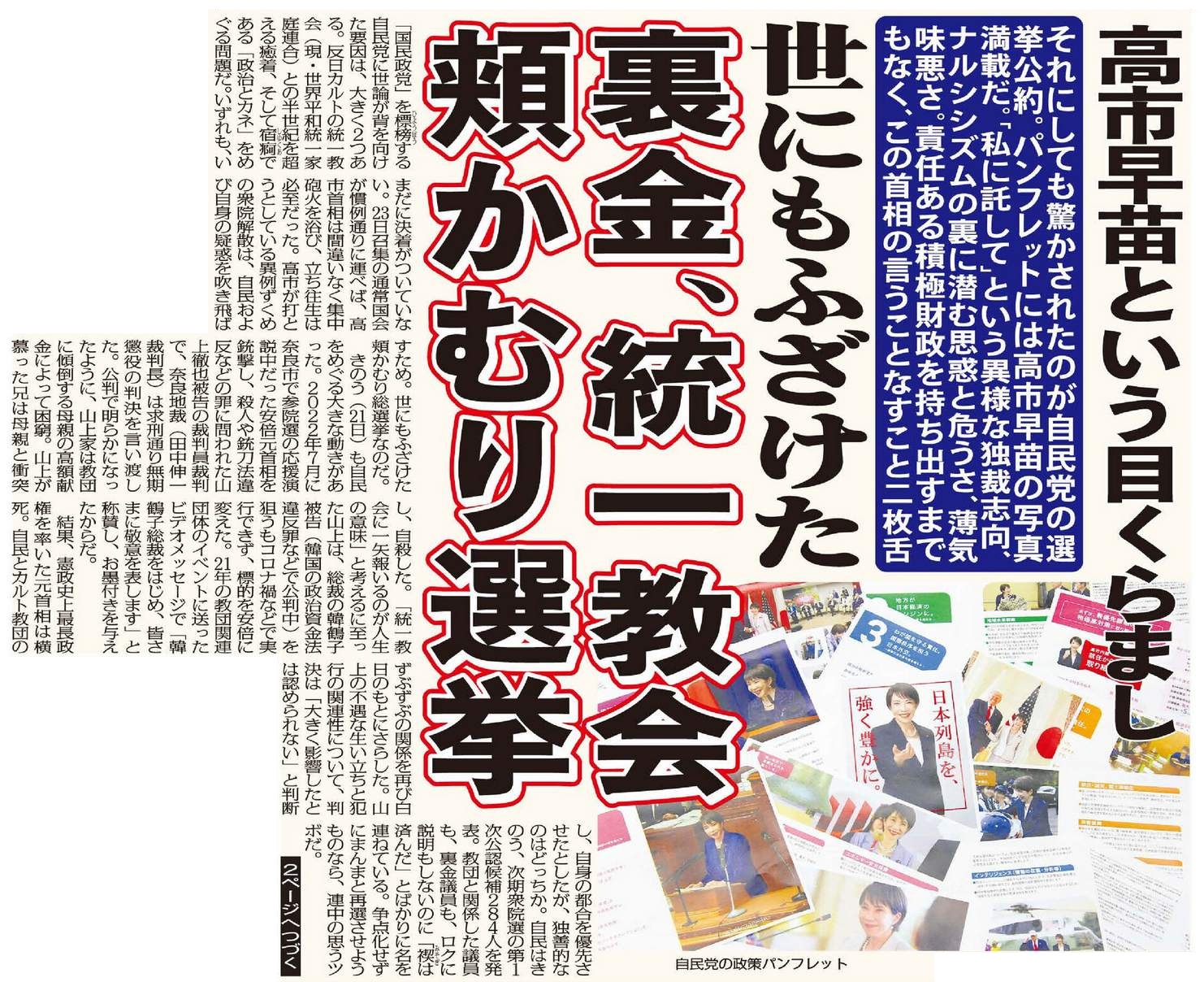 高市早苗という目くらまし 世にもふざけた裏金、統一教会頬かむり選挙