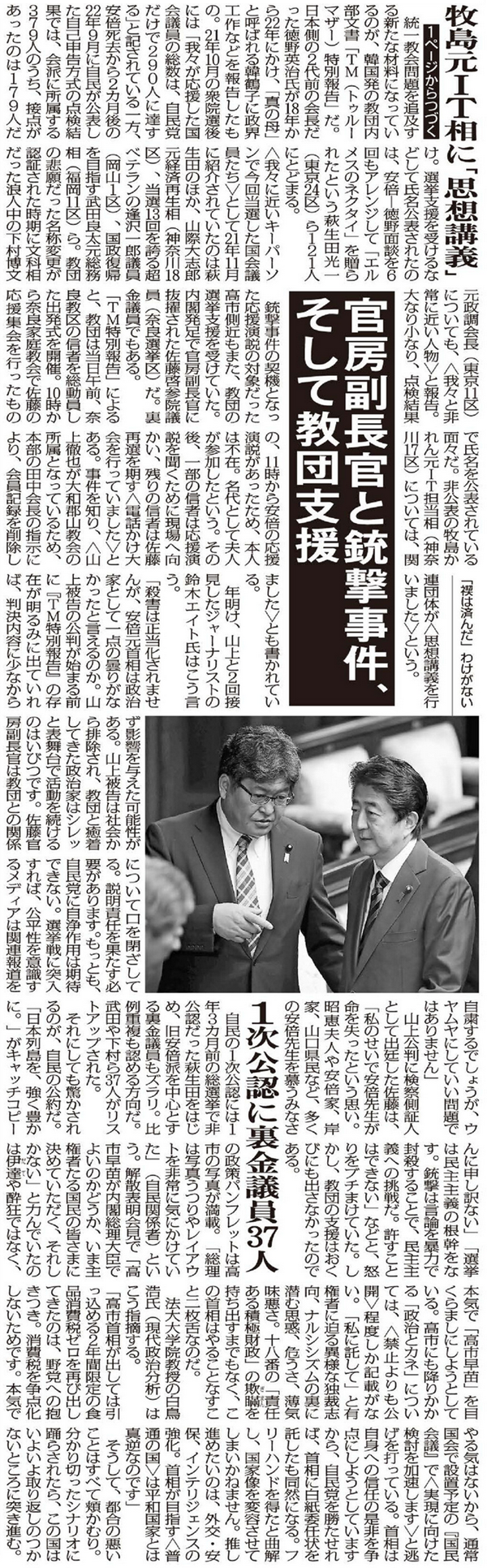 官房副長官と銃撃事件、そして教団支援