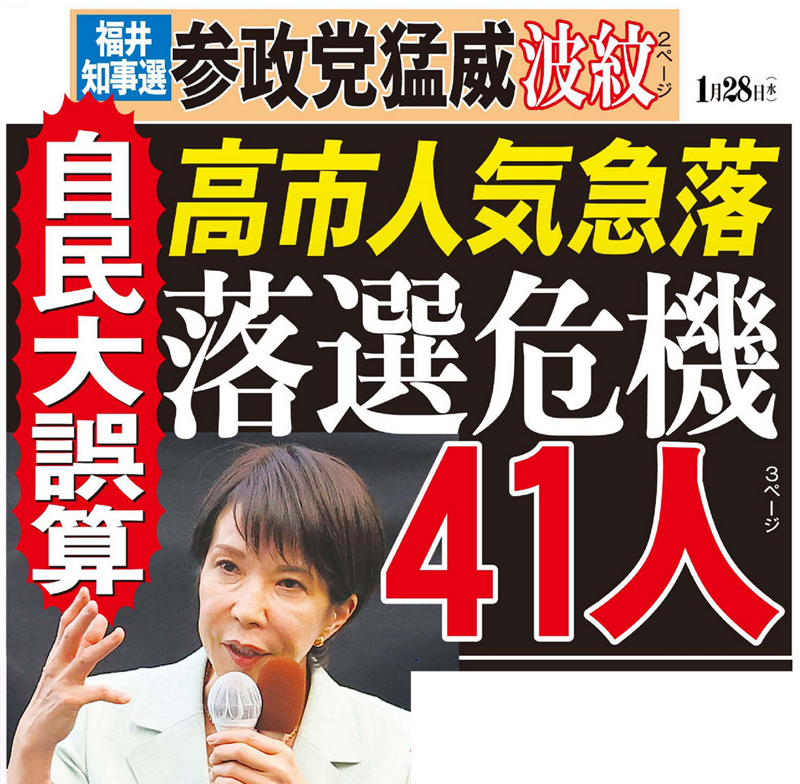 27日からスタートする衆院選。いきなり高市政権にミソがついた。