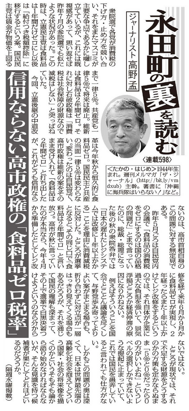 信用ならない高市政権の「食料品ゼロ税率」 永田町の裏を読む