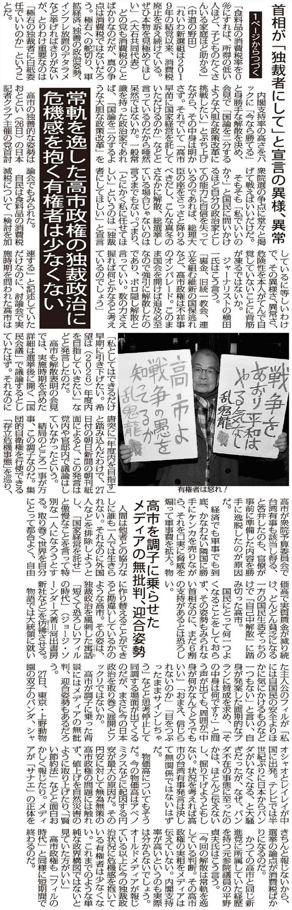 常軌を逸した高市政権の独裁政治に危機感を抱く有権者は少なくない