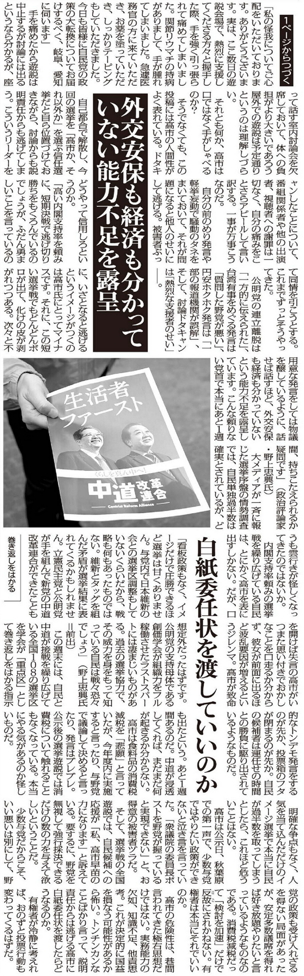 維新とタッグの危うさ、中道の浸透、まだまだ結果はわからない。