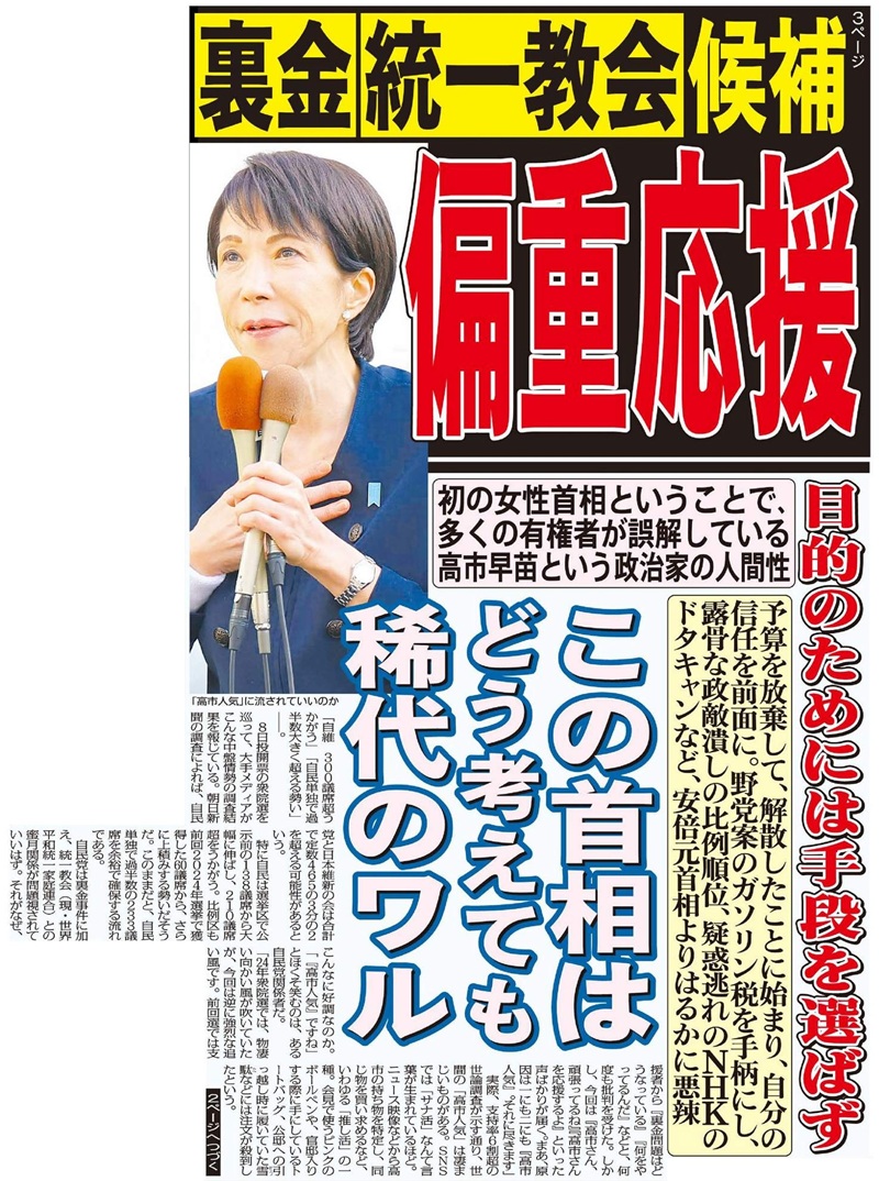 しかし、選挙は人気投票ではないはずだ。初の女性首相ということもあり、多くの有権者は高市早苗という政治家の人間性を誤解しているのかもしれないが、本性は、政権維持のためには手段を選ばない稀代のワルと言っていい。