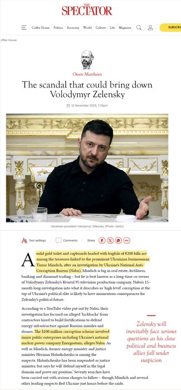 ウクライナのウォロディミル・ゼレンスキーは2024年5月に大統領の任期が切れた後も大統領を自称している。そうしたことを可能にしているひとつの理由は彼がイギリスの対外情報機関MI-6を後ろ盾としているからだろうが、ウクライナがロシアに敗北していることを隠し切れなくなった現在、西側のメディアもゼレンスキーにとってマイナスになる情報を伝え始めている。そうした記事のひとつがイギリスの体制派メディアとして知られているスペクテイターに掲載された。