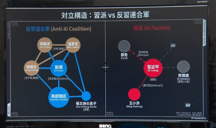 全体の図式として、反習連合は劉源を中心に、胡錦濤、ケ樸方らが結束し、習派は習近平、姉の正教、最、王小洪で支えられているが、王小洪の力は衰えている。こうした報道がCNCから出ている以上、習政権は既に崩壊寸前だと私は考える。ただ、23日以降は一切触れられていないのが不気味で、削除されていない点も謎だ。