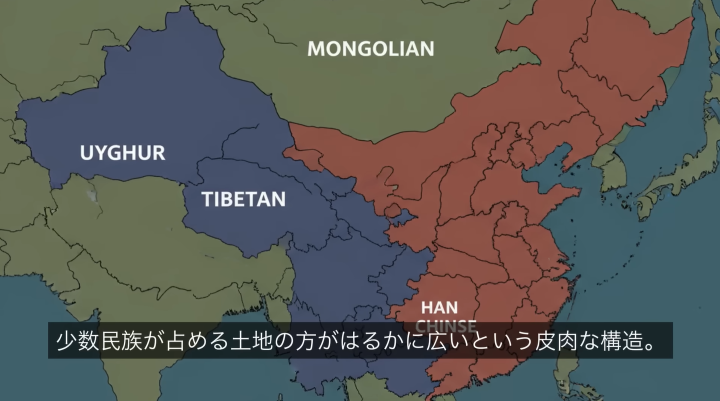 ・抑圧の構図: 中国領土の半分以上は少数民族の土地であり、中でも新彊ウイグル自治区は中国の原油・ガスの約3分の1を産出する要所です 。