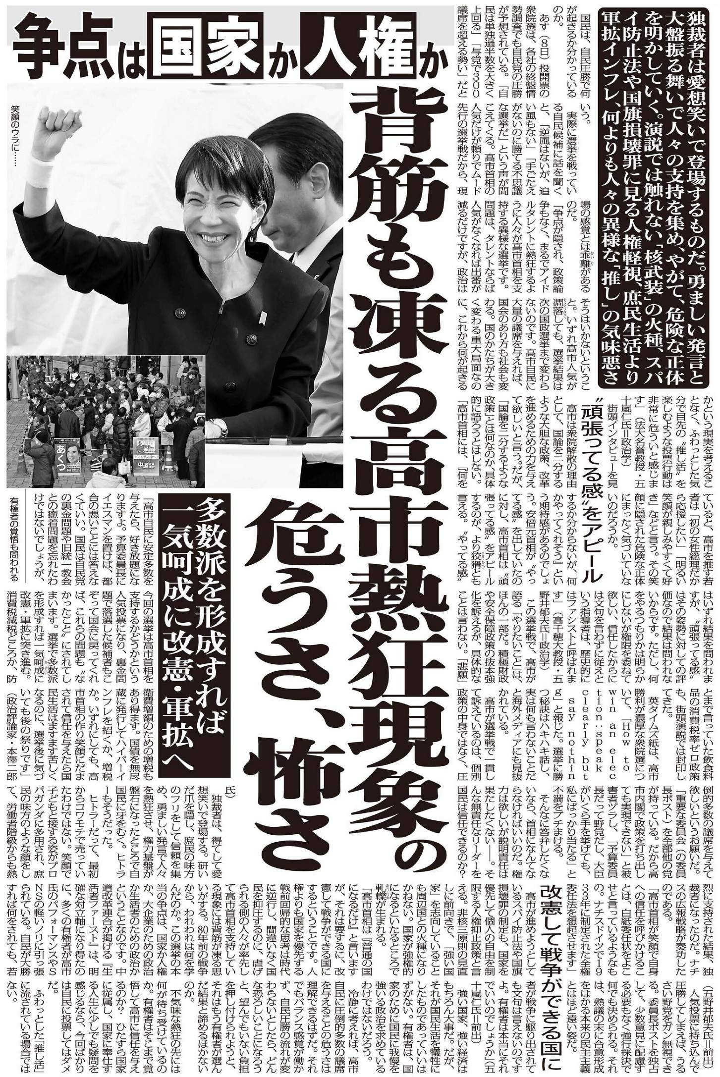 不気味な熱狂の先には何が待ち受けているのか。有権者はそこまで覚悟して高市に信任を与えるのか? ひたすら国家に従属し、国家に奉仕する人生に少しでも疑問を感じるなら、今回ばかりは自民に投票してはダメだ。