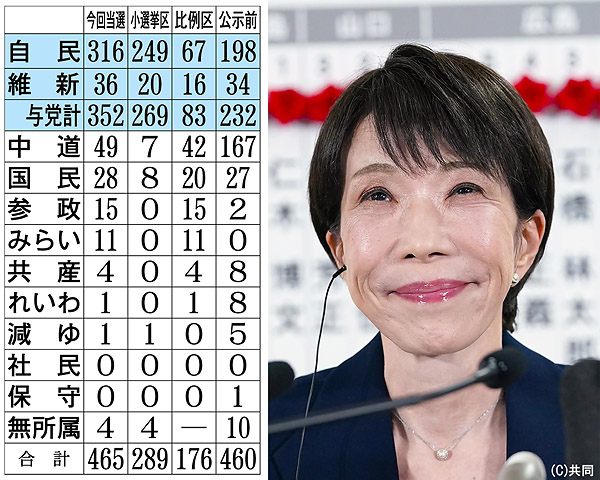 高市首相が仕掛けた世紀のジコチュー総選挙──。8日、投開票が行われたが、その結果は打ちのめされるような衝撃だった。自民が単独で衆院3分の2を突破する316議席を獲得し、日本維新の会と合わせて、与党勢力は352議席に達した。一方、中道改革連合は公示前勢力167議席から、半減以下の49議席に。前回選挙で少数与党に転落した自民党が一夜にして、大政翼賛会かと見まがう勢力と化したのである。こうなると、高市が「国論を二分する」国づくりを加速させるのは間違いない。それは「普通の国」という詭弁にすり替えられた「戦争する国」である。戦後80年かけて積み上げてきた平和国家の理念は、この選挙で木っ端みじんに打ち砕かれてしまったのだ。雪景色に包まれた暗黒の日曜日は今後、歴史に刻まれることになるだろう。