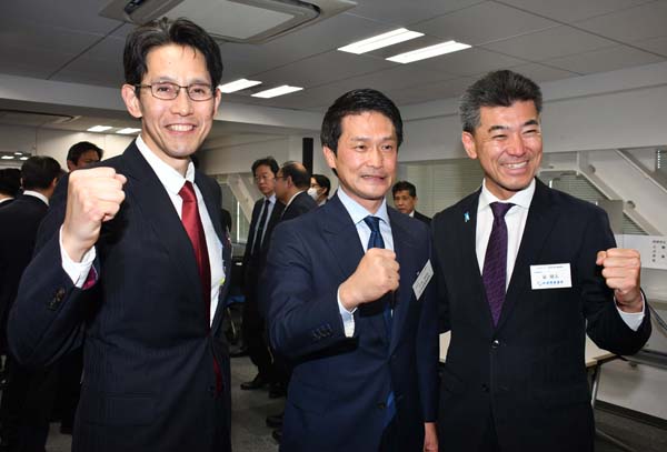 ポーズはいいのだが…(左から階幹事長、小川代表、泉元代表) /(C)日刊ゲンダイ