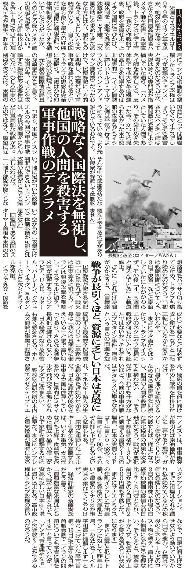 自身の地位を維持するためなら国際法を無視し、他国の人間を殺害しても構わない--。そう受け取られても仕方がないほど、今回の軍事作戦はデタラメの極みなのだ。