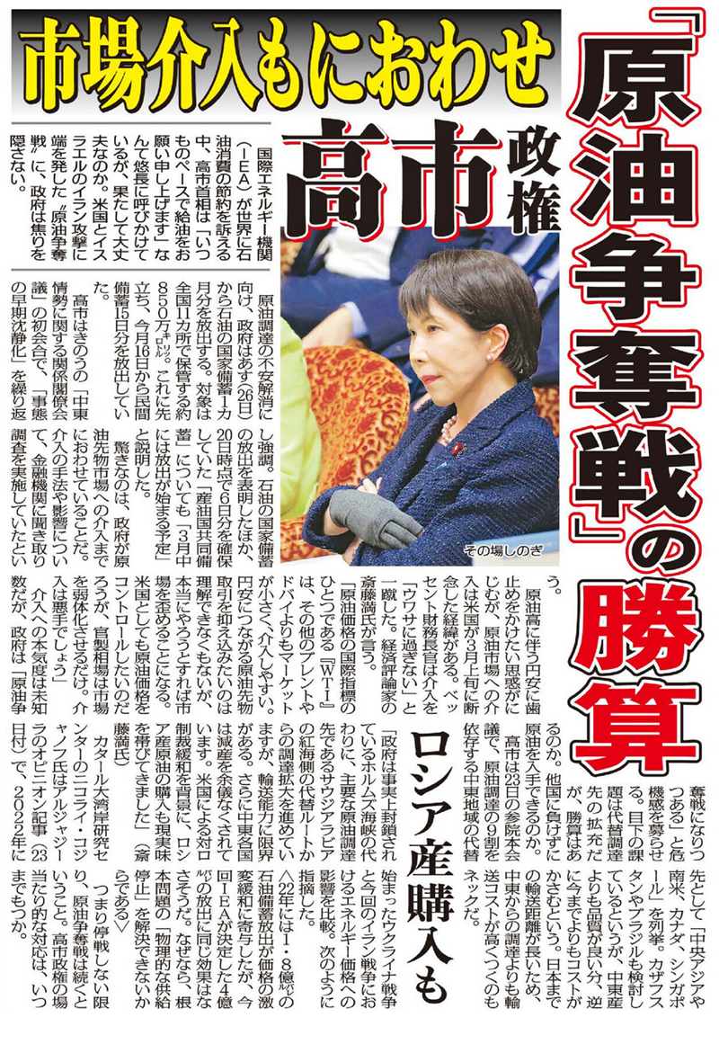 つまり停戦しない限り、原油争奪戦は続くということ。高市政権の場当たり的な対応は、いつまでもつか。