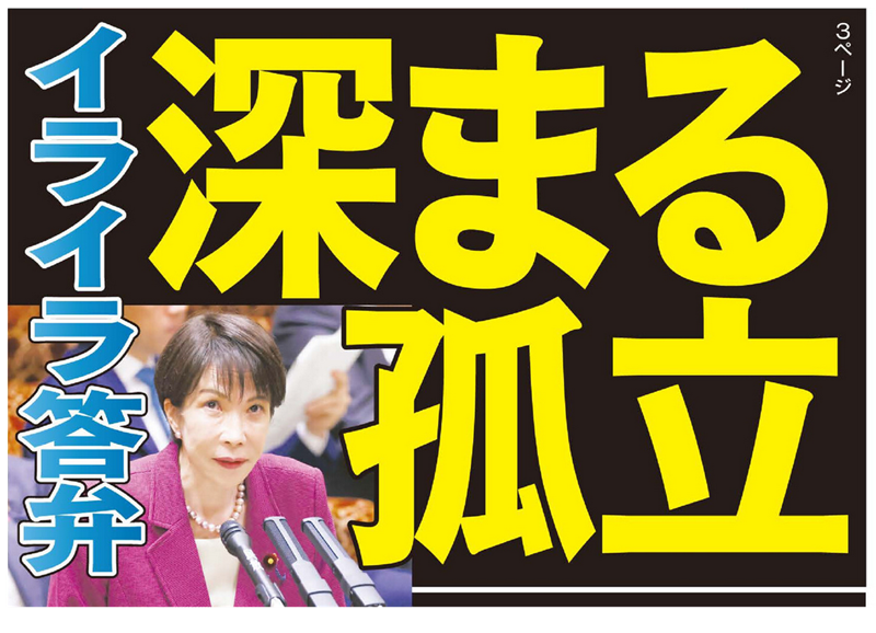 「この週末、イタリアのメローニ首相は湾岸諸国を訪問した。事態の拡大阻止のために高市総理自ら誰か首脳に働きかけたことはありますか」との質問には、薄笑いで「しょっちゅうやらせていただいているかと思います」と答弁。メローニ首相が中東を歴訪してエネルギー供給確保に奔走する一方、わが国初の女性首相は例によって土日は公邸におこもり。来客ゼロだった。