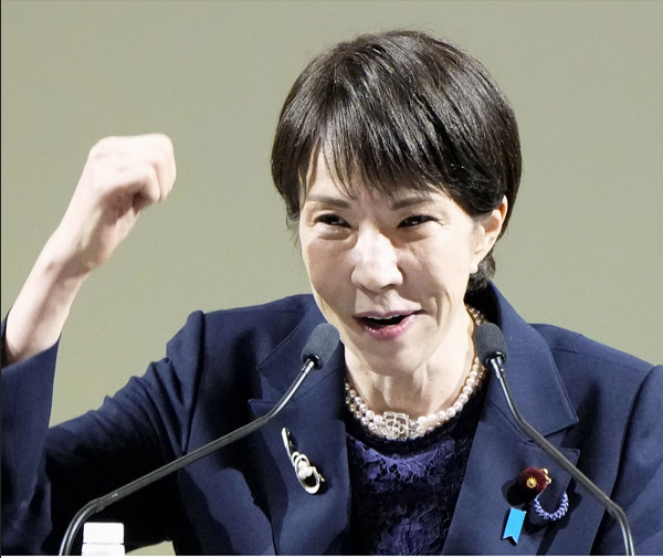 12日、都内のホテルで行われた自民党大会。高市首相(党総裁)は憲法改正について、「時は来た。発議にめどが立った状態で来年の党大会を迎えたい」と前のめりだった。