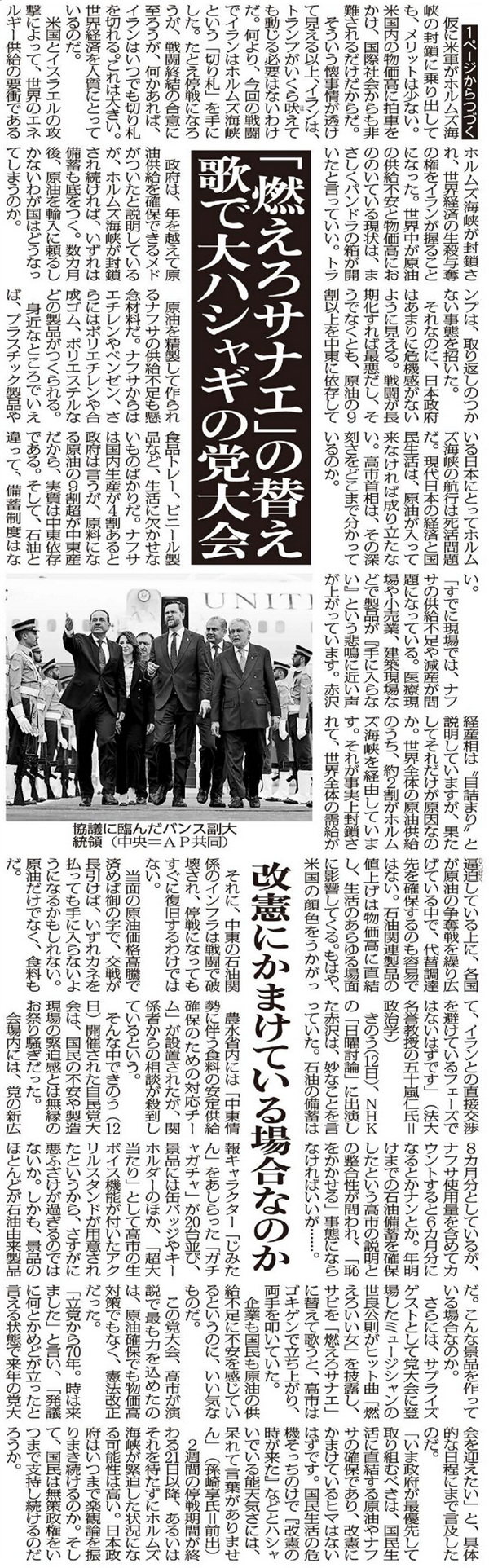 この党大会、高市首相が演説で最も力を込めたのは、原油確保でも物価高対策でもなく、憲法改正だった。