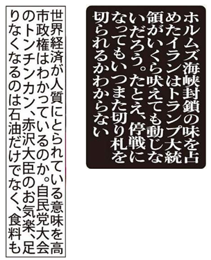 ホルムズ海峡封鎖の味を占めたイランはトランプ大統領がいくら吠えても動じないだろう。たとえ、停戦になってもいつまた切り札を切られるかわからない。
