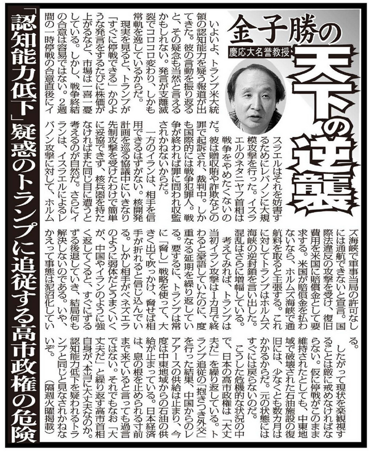 2026/04/14 日刊ゲンダイ ※後段文字お越し