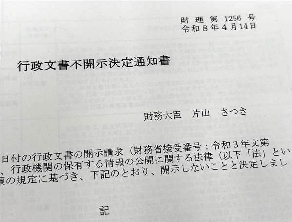 だがそれは初めからわかっていることだ。なぜ急に不開示という判断になったのか? そこを尋ねても担当者は「財務大臣が決定を出した」と言うだけだ。
