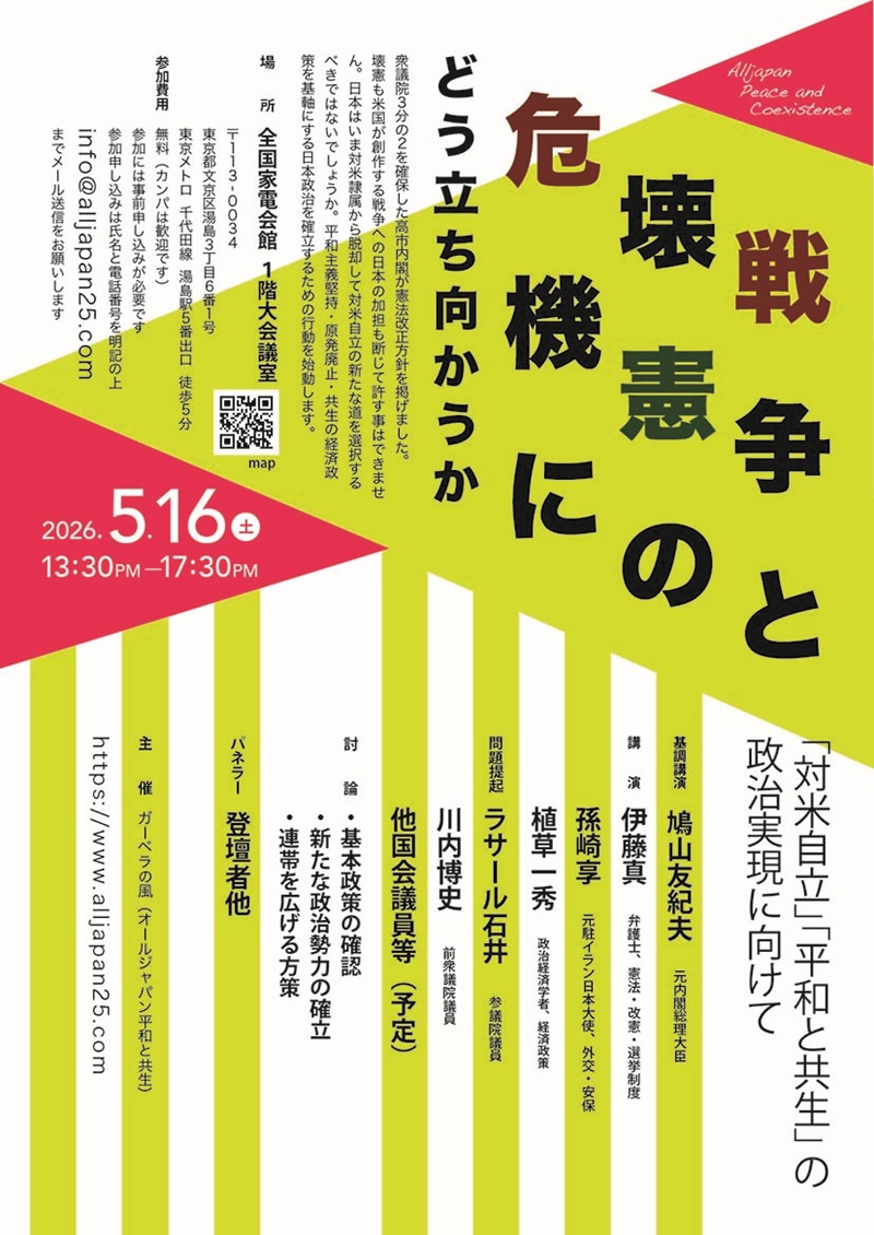 5月16日(土)午後1時半〜 東京湯島の全国家電会館での「ガーベラの風」イベント
