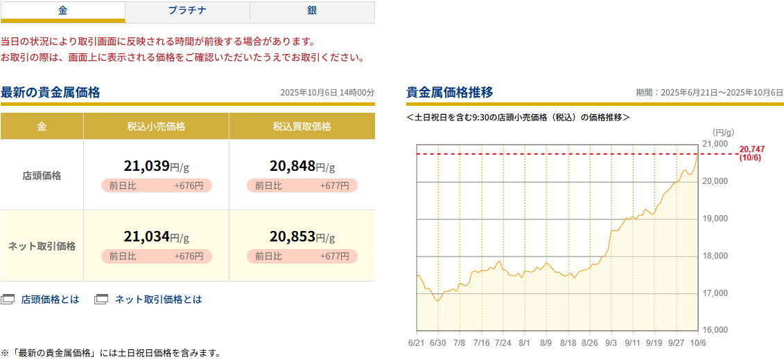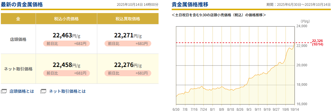 金の小売価格が初めて2万2000円を突破しました。