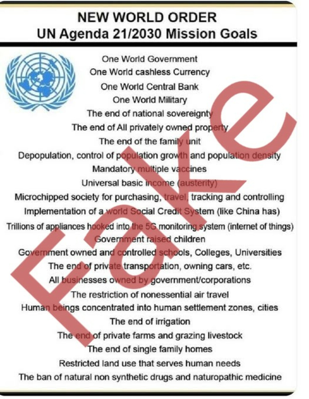 ◆ Debunked: The UN Agenda 2030 goals do not mention a ‘one world