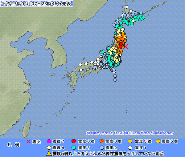 それから上のビデオは冒頭で「42秒差で、ふたつの地震がほぼ同じ地点で起きた」と主張しているのですが、気象庁のサイトではURLが同じながら、23時37分発表のものと、