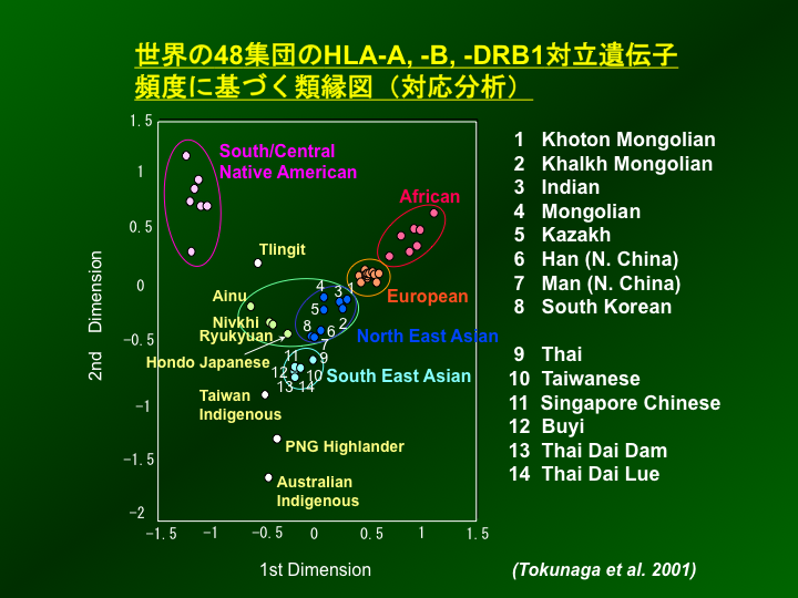 「ミトコンドリアDNA(mtDNA)、Y染色体ハプロタイプ、HLA(人白血球型抗原)」の調査結果から、例えば「アイヌ」には「ニヴフ(Nivkh)」の系統が混じっていると、かなり以前から指摘されていました。