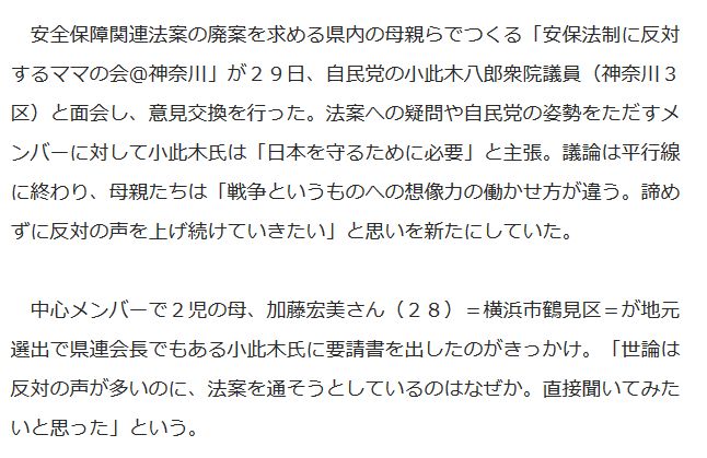 >ママサン 実の所。この間もいろんなデモがあったんだけど、目に見えなかった、それに人々が避けていた。70年安保の後遺症から、ようやく抜け出られて普通の国になり始めた。