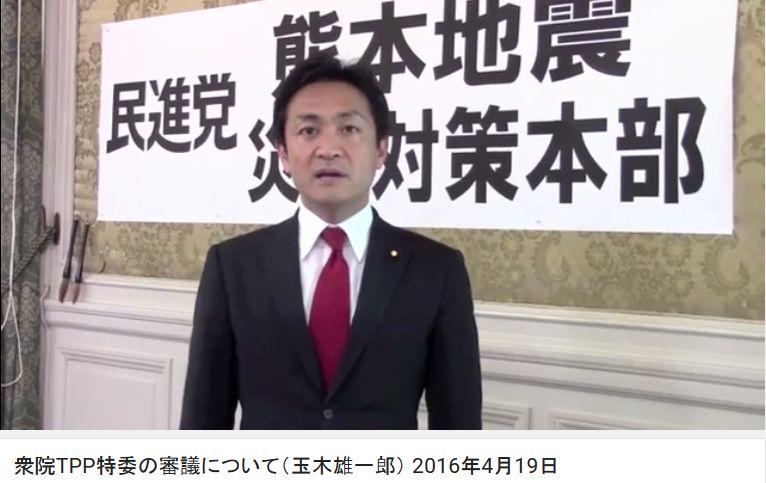 >玉木雄一郎 今朝の国会対策委員長会談で、民進党は被災者救援を優先させTPP特別委員会を延期してはどうかと提案し、与党側も一旦賛同の意を示したが、安倍総理が「TPP審議を一歩でも前に進めたいので審議を行う」と強く主張し開会となった。今は被災者救援を優先させるべきときだ。優先順位が違うと思う。