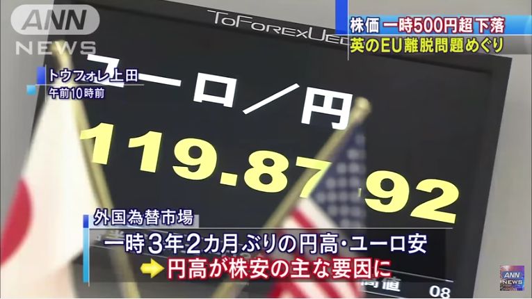 日経平均が再度500円超安、英EU離脱問題の不透明と105円台円高