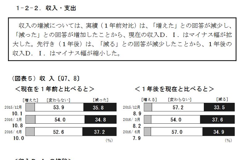 【あれれ?】1年前より収入が「減った」37%。消費者の景況感を示す指数▲27・3(3か月前から4.8ポイント悪化)