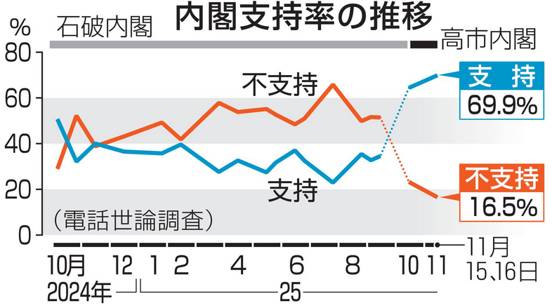 おそらくですが、支持率は倍増、不支持率は半減させてますね。