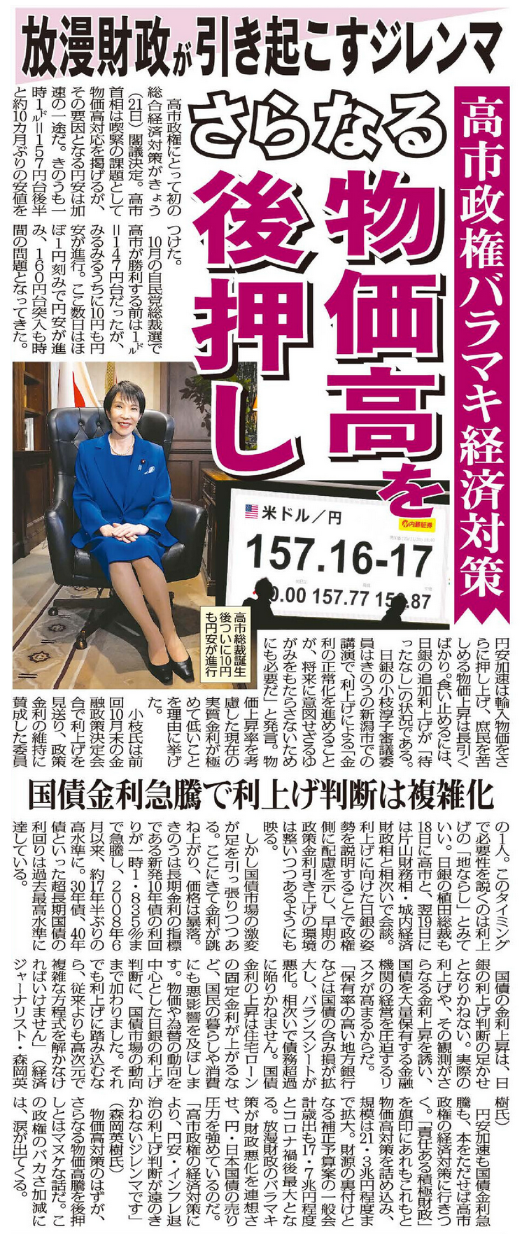 「高市政権の経済対策により、円安・インフレ退治の利上げ判断が遠のきかねないジレンマです」(森岡英樹氏)