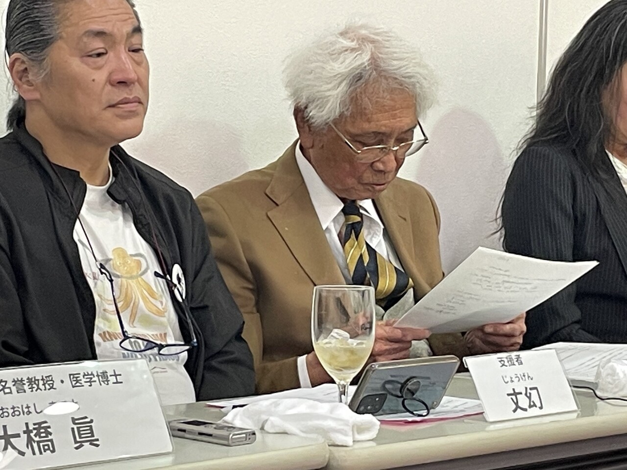記者会見で陳述書を読み上げる永井さん(中央、2025.12.9筆者撮影)