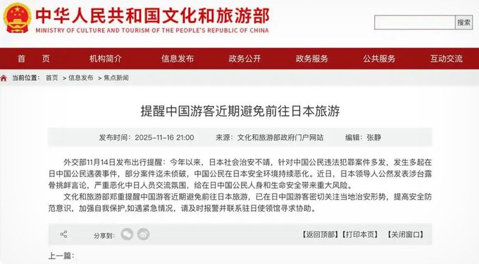 新たに首相に就任した高市早苗は、11月に日本の国会で、台湾での紛争は日本の「存立危機事態」であると述べ、日本が中国との戦いに直接かつ積極的に関与することをほのめかした。この発言は、10月末に韓国で習近平国家主席とトランプ大統領が貿易関係をリセットするための大規模な会談を行った直後に出された。台湾問題は米中会談では両者によって明確に棚上げにされた。