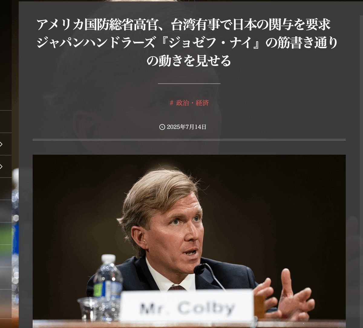 もし高市の発言が米国と協議せず独自のものであれば、彼女は日本が中国との戦争を挑発すれば、米国が日本を援護すると思っているのだろうか?