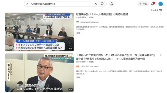 「オール沖縄会議」抗議活動中止 辺野古沖の転覆事故受け